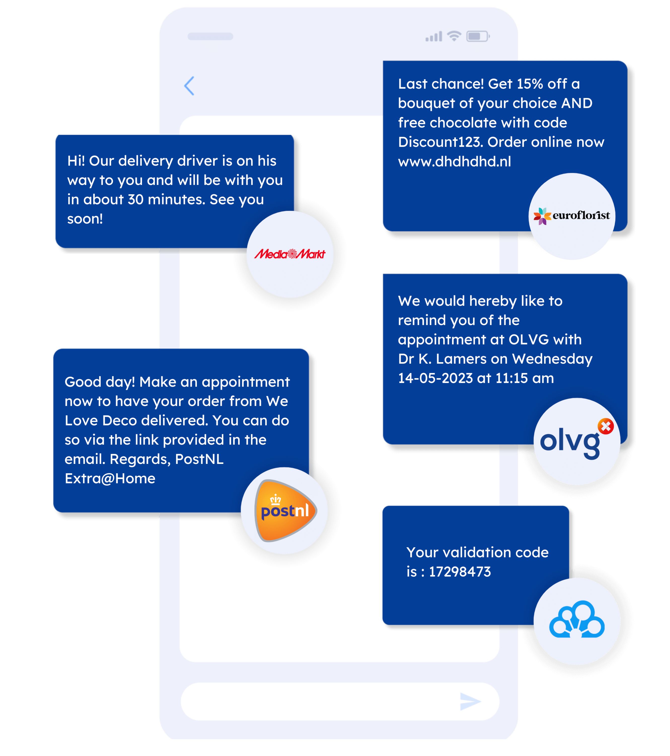 In the logistics sector, for example, we make The Last Mile more cost-efficient and customer-friendly, with text messages about Pick Up Points and any delays.