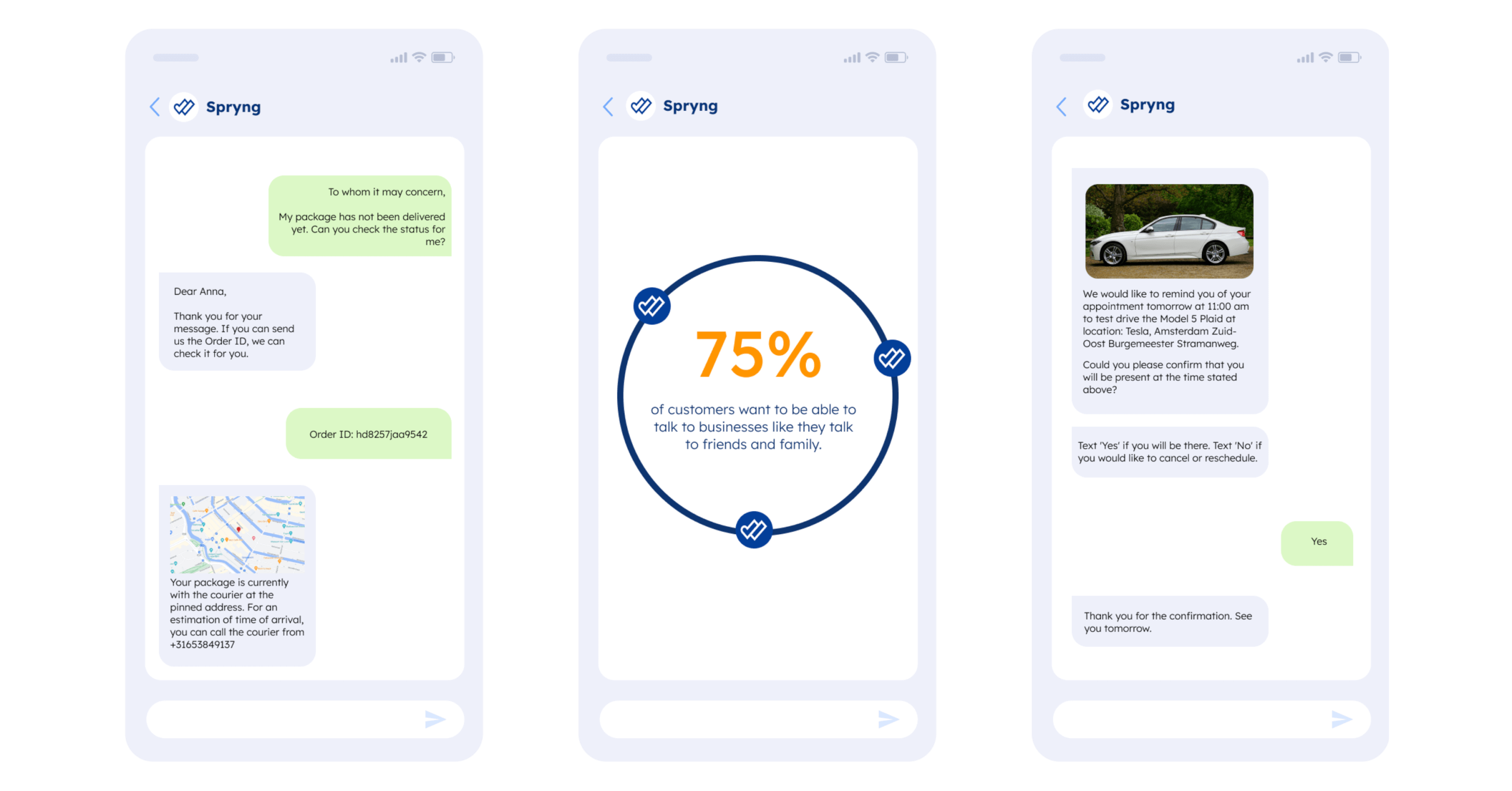 WhatsApp for Business offers features that the free service cannot offer. Spryng’s WhatsApp for Business service provides you with a verified account, bulk shipping, REST API access, instant support and much more.